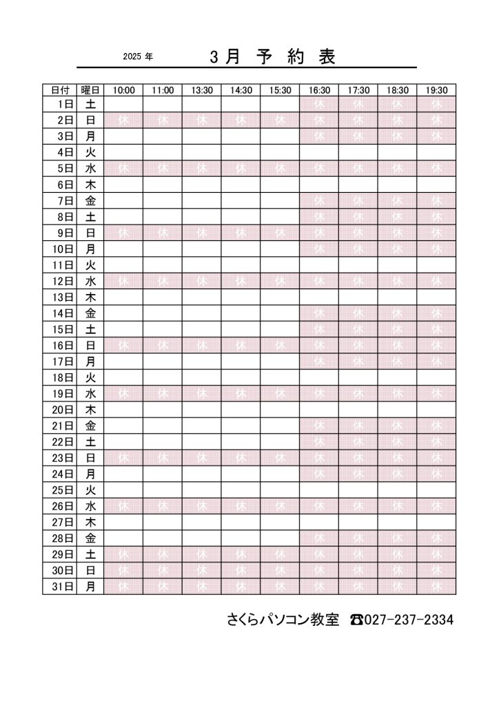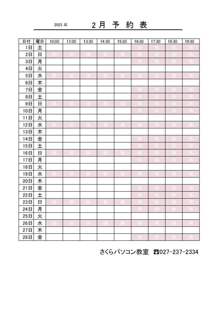 講座予約可能日時